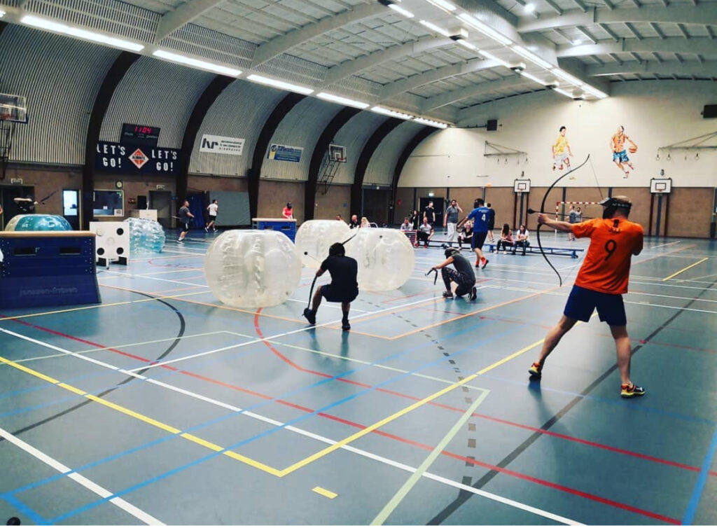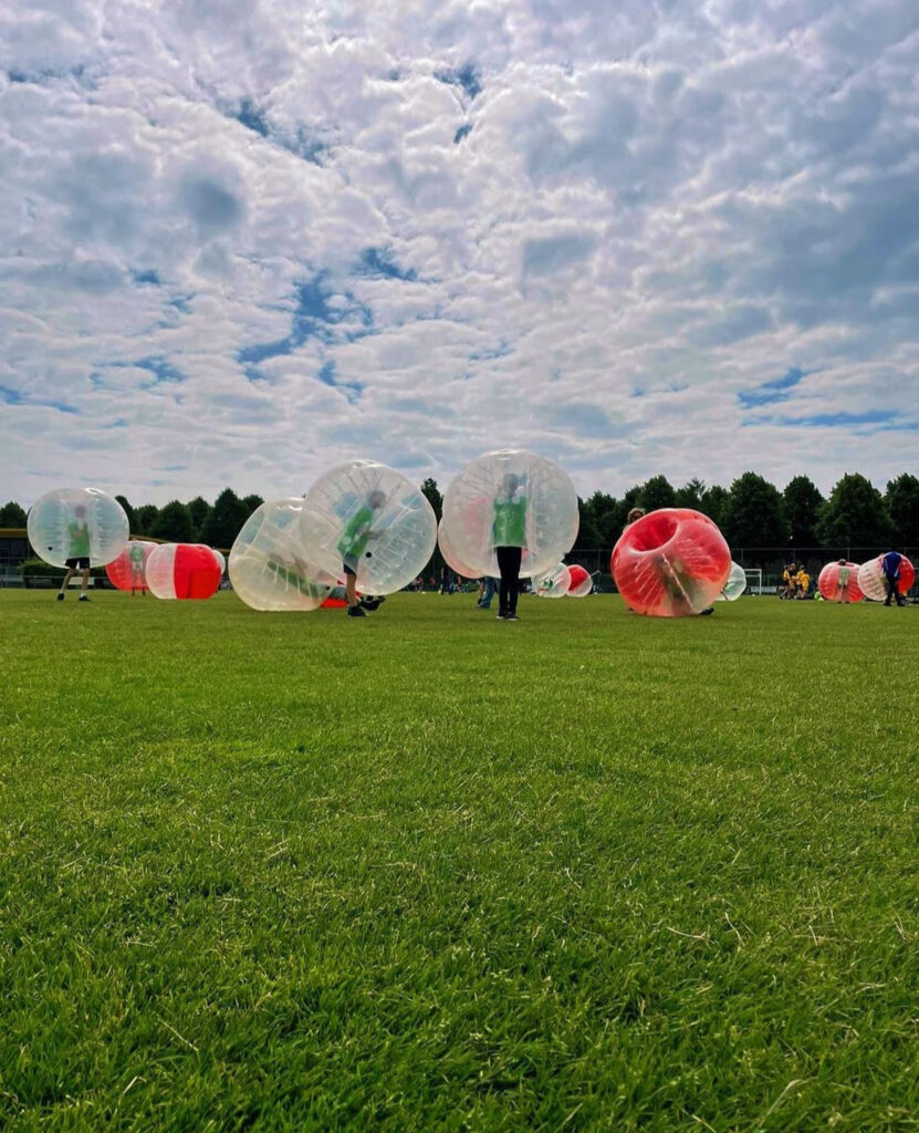 Bubbelvoetbal is een hilarisch en actief spel waarbij je in een grote opblaasbare bubbel over het veld rent. Botsen mag, lachen moet! Ideaal voor kinderfeestjes, familiedagen, teamuitjes of sportdagen. Geschikt voor zowel binnen als buiten op gras, kunstgras of in een gymzaal.